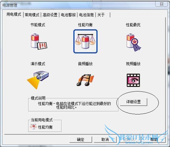 注意:不同版本电源管理程序可能界面稍有不同,但菜单选项和具体设置基本相同。
