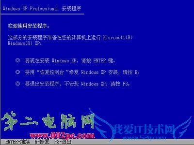 全中文提示,“要现在安装Windows XP,请按ENTER”,按回车键后,出现如下图2所示