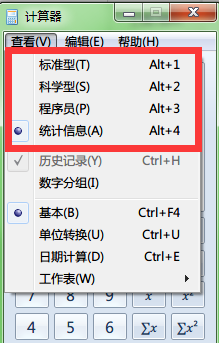 1、点击计算器左上角的查看菜单,下拉菜单选择工作类型。