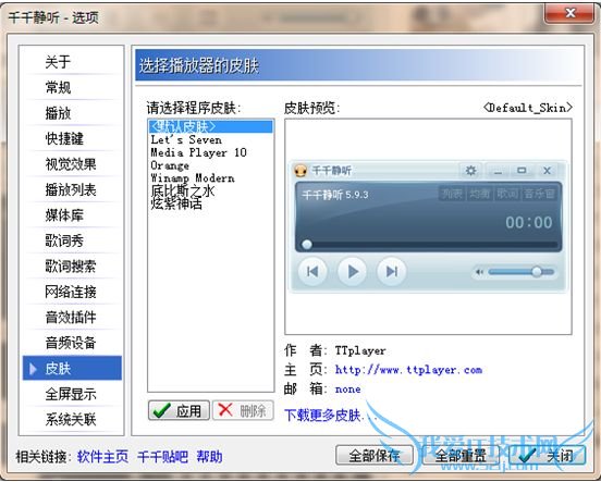 千千静听皮肤文件默认的目录为“C:Program FilesTTPlayerskin”