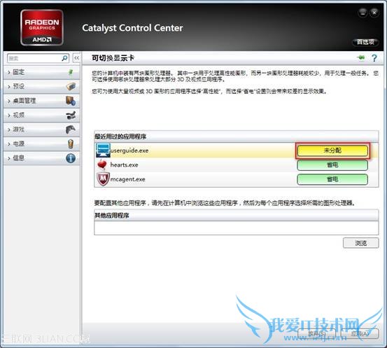 2. 打开到配置可交换图形界面,此时可以看到“最近打开的过的应用程序”,如想使用此程序使用高性能;