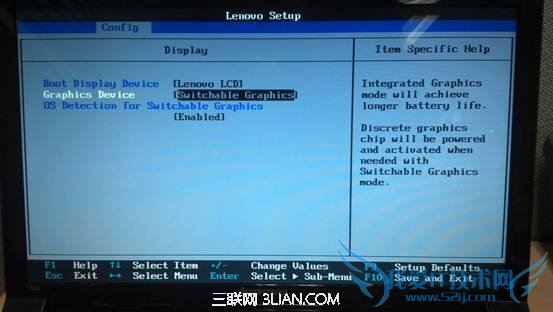 检查BIOS设置发现BIOS的默认显卡模式是集成显卡,设置为显卡切换模式即可。
