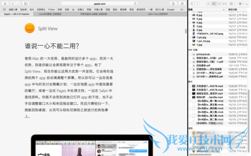 iOS 9系统发布时,分屏功能是其一大亮点,现在Mac OS X新系统El Capitan10.11同样可以实现Split View分屏功能了,那么Mac如何开启Split View分屏功能呢?下面PC6苹果网小编教大家两种Split View分屏功能的开始方式,以及如何调整两个应用间Split View分屏比例和两个应用开启的情况下如何选择应用的顶部菜单。