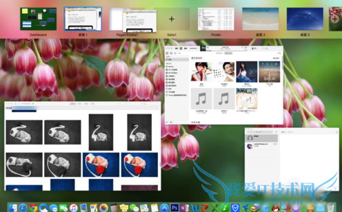 2、在Mission Control下,可以点击F4或者四指在触摸板上推完成开启Mission Control,鼠标点击要添加分屏的应用拖动到顶部桌面栏