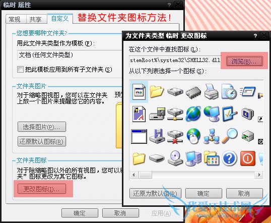 这里是替换文件夹图标方法,同样浏览找到你下载的ico图标文件应用即可!