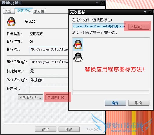 这里是替换应用程序图标的方法,浏览找到你的ico图标文件应用即可!