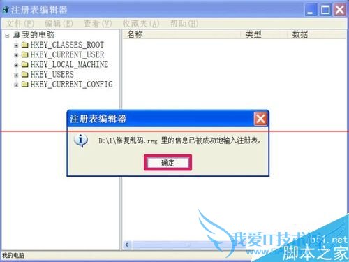 提示,注册文件“修复乱码.reg”后缀一定要为reg才行。