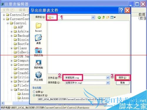 3,选择一个保存文件夹,再给这个注册文件起个名,如“修复乱码.reg”,按“保存”即可。