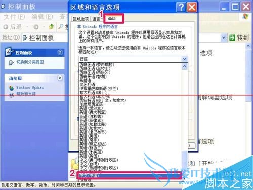 如果是XP系统,选择“高级”项,打开“非Unicode程序的语言”下的下拉框,选择“中文(中国)”这一项,设置就完成了。