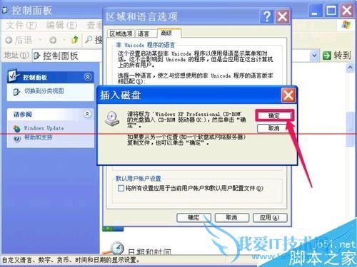 4,如果在设置“中文(中国)”区域语言时,弹出窗口,提示“插入磁盘”,这可能是“中文(中国)”语言字库损坏,必须修复安装。