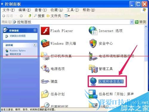 2,进入控制面板窗口后,找到“区域和语言选项”这一个图标,双击打开此项。