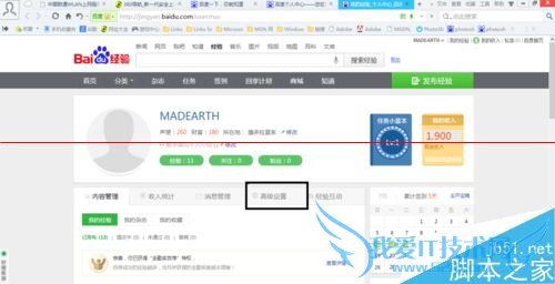 4、在工具栏中找到“经验”这个选项,进入经验的主页