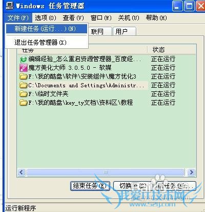 单击文件--新建任务,在打开里输入"explorer.exe",点击确定,便完成了资源管理器的重启了。