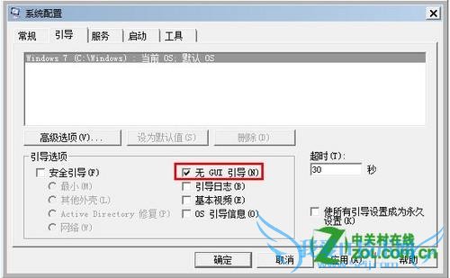 九、快速启动系统 这个功能是关闭掉系统进入时的画面,大概能为您节省2-3s的启动时间,其它选项不要动,可能会产生负面影响。按键盘win+R 输入Msconfig,检查无GUI引导是否勾上了,如果没有请勾上,确定。