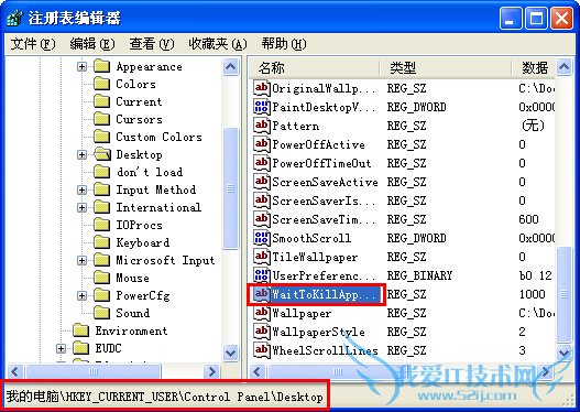 windows操作系统由于体积过于庞大,程序过于多,所以关机的速度特别的慢,通过更改注册表选项,windows xp系统关机速度就会非常的快,找到HKEY-CURRENT-USERControl PanelDesktop键,将WaitToKillAppTimeout改为:1000,然后保存,当重启系统后我们会发现电脑关闭程序时仅等待1秒。
