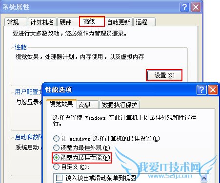 2、关闭系统属性的一些特效。在桌面上我的电脑点击鼠标右键,然后在下拉菜单中选择属性,然后在弹出的界面中,我们点击高级按钮,在高级界面中,我们点击性能栏目中的设置按钮,然后在弹出的界面中,我们选择调整为最佳性能即可。