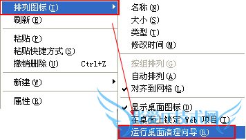 6、在桌面上的图标尽量不要过多,最多保留十个左右的即可。在桌面上存在的快捷键,不经常用,但是不想删除,我们可以再桌面上单击鼠标右键,然后选择排列图标,之后选择运行桌面清理向导即可。