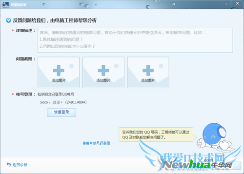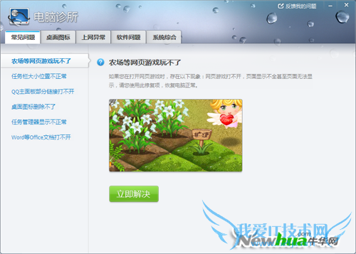 在电脑诊所中,软件为用户列举了一些比较常见的电脑问题,如若你恰好被这些问题所困扰,不妨试试点击“诊断”按钮进行快速修复操作,如若不见成效,你也可以将你的问题通过右上角的反馈按钮进行提交,让专家来帮助你解决。