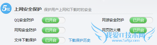 1、上网安全保护:主要在用户的上网过程中进行网页访问、网购安全以及文件下载的相关防护操作,建议全部开启;
