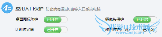 2、应用入口保护:主要涉及用户的桌面图标异常管理、摄像头防护以及U盘自启动的防护,除ARP防火墙外,建议全部开启;