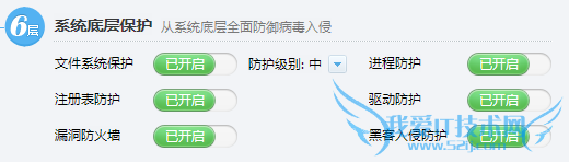 3、系统地城保护:最敏感的系统文件、系统注册表以及进程防护都可以在这里得到有效保障,最底层也是最薄弱的环节,建议全部开启。