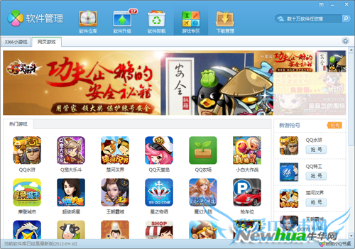 除了以上的一些功能优化外,QQ电脑管家的软件管理也有了点小变化,打开软件管理后,是不是感觉有点小清新呢,除了页面更加简洁外,软件管理还整合了腾讯的游戏专区,提供了3366小游戏以及旗下的网页游戏等内容,让用户可以更加方便的进行小娱乐活动。