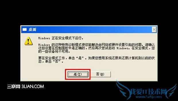 3. 进入后系统会弹出“Windows 正在安全模式下运行”的提示,请左键点击“是”;
