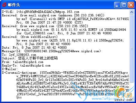 远程邮箱管理除了上述非常实用的功能外,还可以查看发件人的详细信息,选中邮件后,单击“邮件头”按钮,就可以查看包括发件人的IP地址等信息了(图4)。