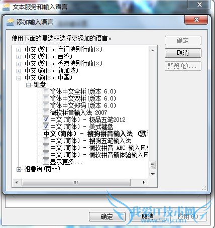 步骤三、查看该窗口下已安装的服务上面是否只有默认的输入法,如果没有其他的输入法就重新安装一个搜狗输入法,然后在已安装的服务上点击“添加”按钮,如图所示:
