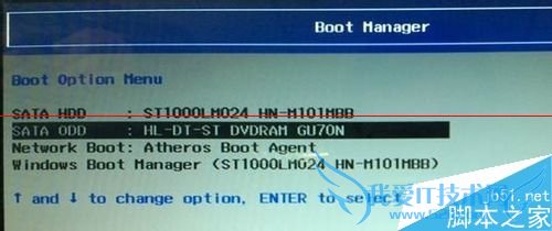 (4)在计算机重新启动至“Lenovo“LOGO画面时,并按下笔记本键盘上“F12”键或“Fn键+”F12“键进入笔记本的引导设置界面(若您的笔记本为Y400、Y500请您在计算机重新启动至“Lenovo“LOGO画面时按下笔记本的电源开关关闭计算机之后,按下”一键恢复按钮”开机,按下键盘上“↓”按键选择启动菜单中的“Boot Menu”项目之后按下“回车”键进入引导设置界面)。在此时将您笔记本的光驱托盘弹出,放入正版的Windows 7操作系统光盘之后将光驱托盘推回,同时选择该界面中的“SATA ODD“或“USB ODD”项目并按下”回车“键,以实现光驱启动。