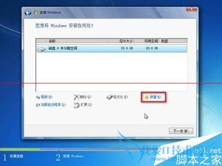 (5)在进入Windows 7系统安装画面后,按照如下步骤进入到Windows 7系统分区画面,具体步骤如下: