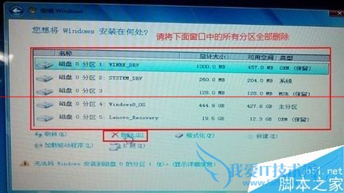 (6)进入Windows 7系统分区画面后,请将其中的全部分区都删除,然后再重新创建新的分区即可。