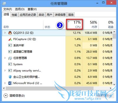 检查CPU占用率是否很高(如果使用率超过50%就要考虑是否系统或程序有问题了)