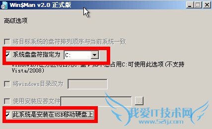 9、下面选择“系统盘盘符指定为”和“此系统是安装在usb移动硬盘上”单击“下一步”。