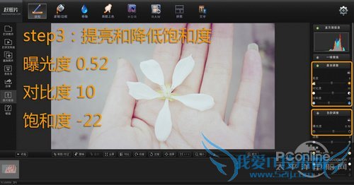 第三步:加强曝光和降低饱和度,增强文艺和小清新的感觉