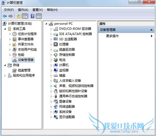 4、然后在左侧点击设备管理器,右侧窗口就会显示本机的硬件配置情况。