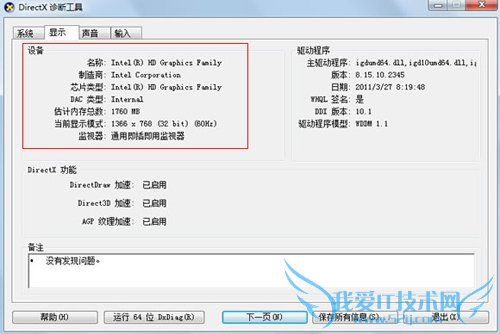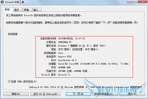 2、这时我们可以查看系统、显示以及声音的硬件配置情况。