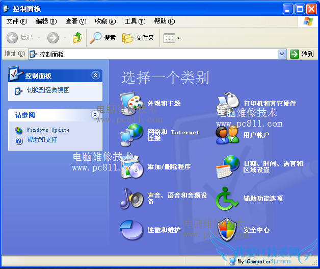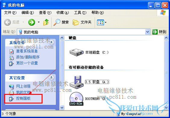 第2步:在打开我的电脑窗口中,找到常见任务左侧中的“控制面板”并单击此项即可打开控制面板。