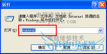 第2步:在打开的运行窗口中输入“control”并回车确定,即可打开Windows控制面板。