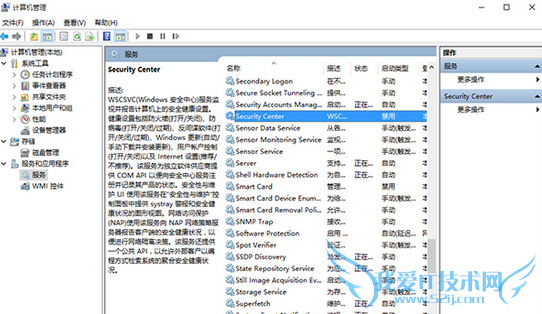 1、首先进入win10桌面,右键点击此电脑--管理--服务和应用--服务--找到 Security Center此项;