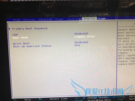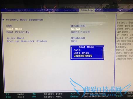 5. 按键盘上的下方向键(↓)选择到Boo tmode选项,按键盘上的回车键(Enter)出现设置,按键盘上的下方向键(↓)选择到“Legacy Only,按回车键(Enter)确认;