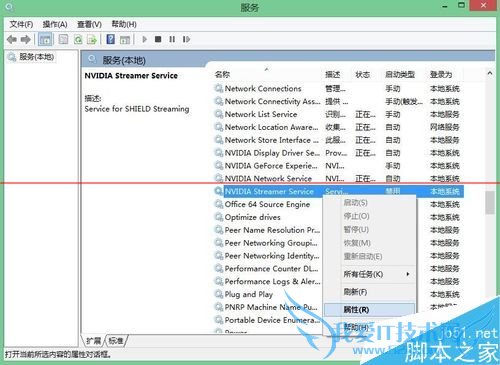 2、找到NVIDIA Streamer Service,左键点击后右键单击,找到“属性”