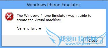 使用Windows Phone模拟器运行,提示“The Windows Phone Emulator wasn't able to create the virtual machine. Generic failure”。