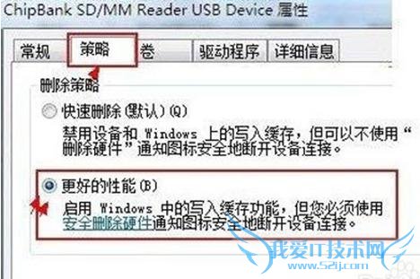 4、进入***** USB Device属性对话框,切换到“策略”选项卡下,在下面选择“更好的性能”,之后再点击底部的“确定”即可。