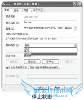 共享服务对应的名称是“Server”(在进程中的名称为services),找到后双击它,在弹出的“常规”标签中把“启动类型”由原来的“自动”更改为“已禁用”。然后单击下面“服务状态”的“停止”按钮,再确认一下即可。