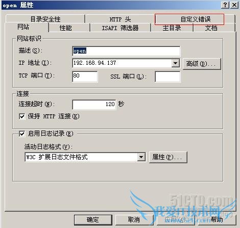 找到“自定义错误”选项卡