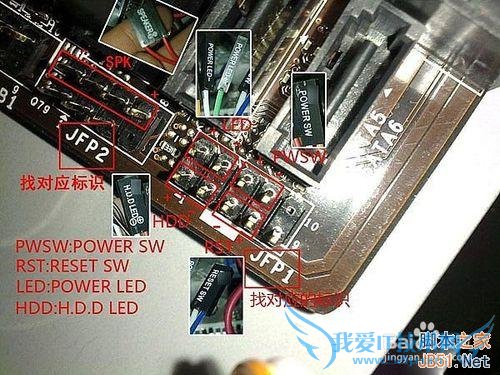 5、把机箱的跳线连接到主板上(如果不会可以看主板的说明书)