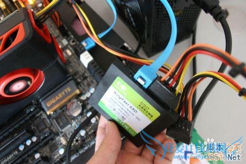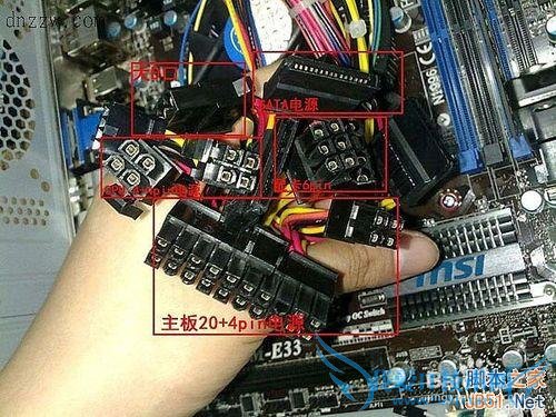 9、把电源盒的电源线和硬盘的数据线连接到主板 电源盒给硬盘供电的分线别忘了给硬盘接上