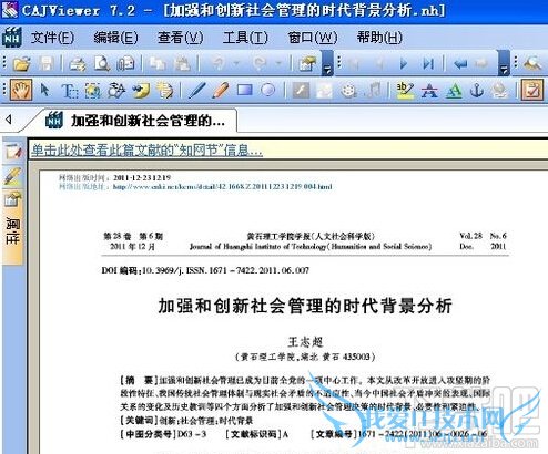 2、安装完成后,nh文件马上就会变成可以打开的文件,我们双击,nh文件就会使用CAJViewer阅读器打开了。除此之外,中国知网还有一款名为CNKI E-Learning的软件也能打开nh文件。