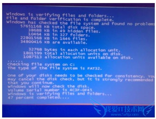 欢迎您访问我爱IT技术网,今天小编为你分享的电脑教程是日常使用电脑方面的电脑常识:非法关机后重新开机取消扫描和检测硬盘分区的方法,学会并运用这些电脑常识,让你快速玩转电脑及互联网方面的知识,下面是详细的分享!